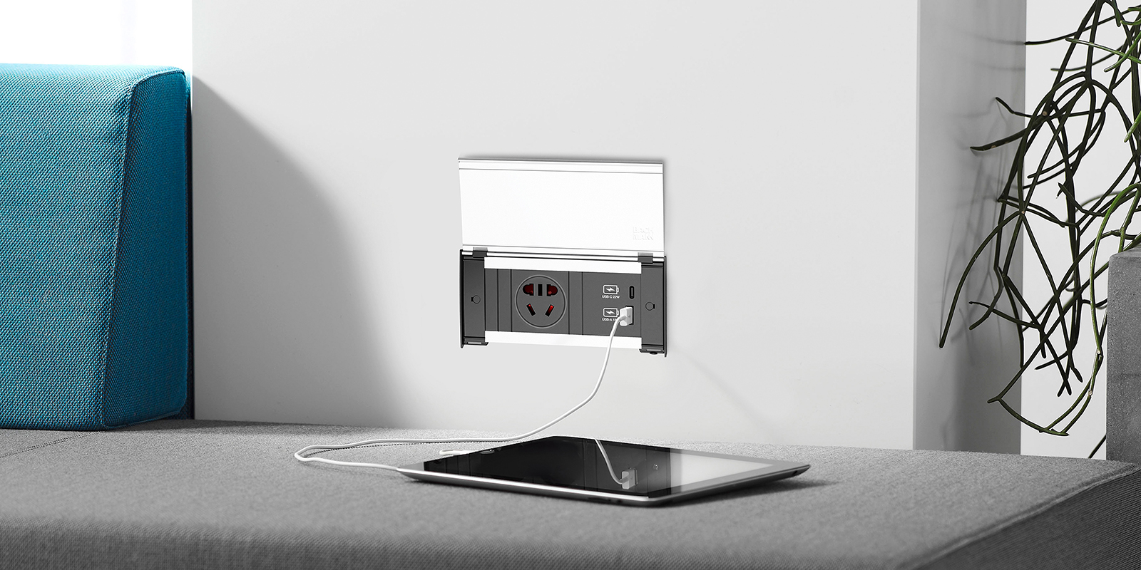 可开合翻盖为插座提供了保护功能,免受外界影响。此产品配备了一个插座及USB A/C接口,最贴合如今的使用需求。